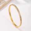 Each crystal is encased in a delicate gold bezel, ensuring maximum sparkle and a refined finish. The bangle is equipped with a sleek, magnetic barrel clasp for a secure and seamless fit, making it as functional as it is beautiful. Whether worn as a standalone statement or layered with other gold cuffs, this bangle brings an air of effortless glamour to any occasion.