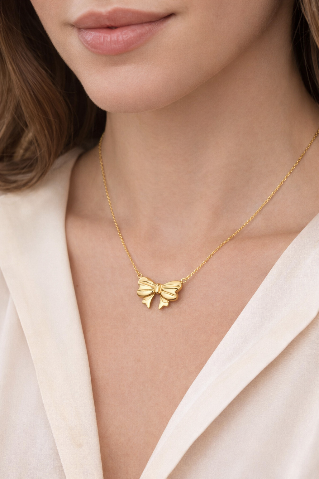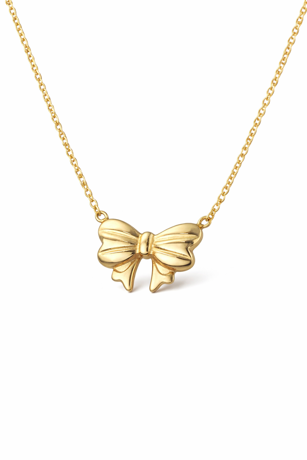 Capture a blend of romance and modern style with our Gold Bow Heart Pendant Necklace. This piece features a delicately sculpted ribbon bow paired with a polished, puffy heart charm, suspended from a sleek cascade snake chain. It is the perfect accessory for those who love the coquette aesthetic or are looking for a meaningful gift that balances whimsy with elegance.