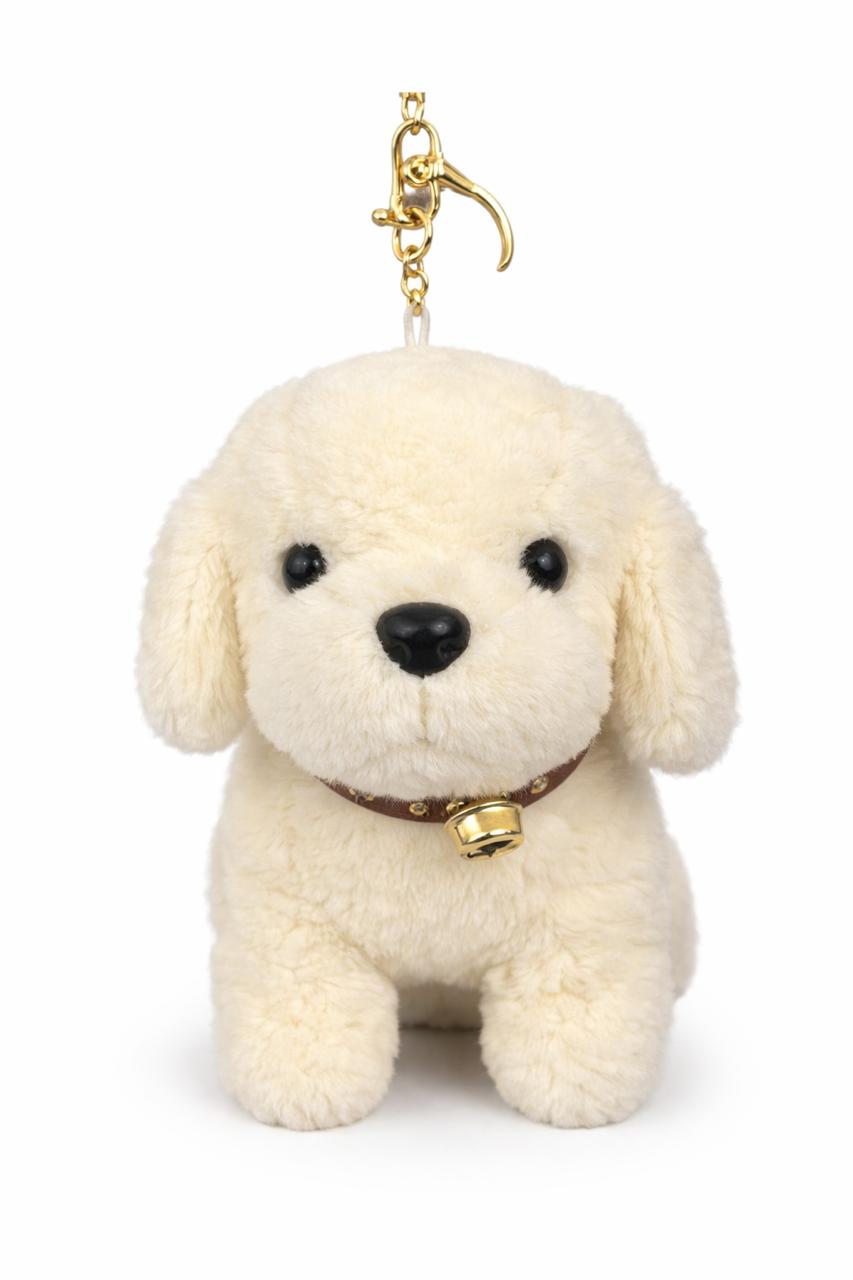 Adorable cream puppy plush keychain made with ultra-soft fabric and a cute bell collar. Comes with a strong gold hook clasp, perfect for bags, backpacks, and keys. A lovely gift for dog lovers, girls, and kids.