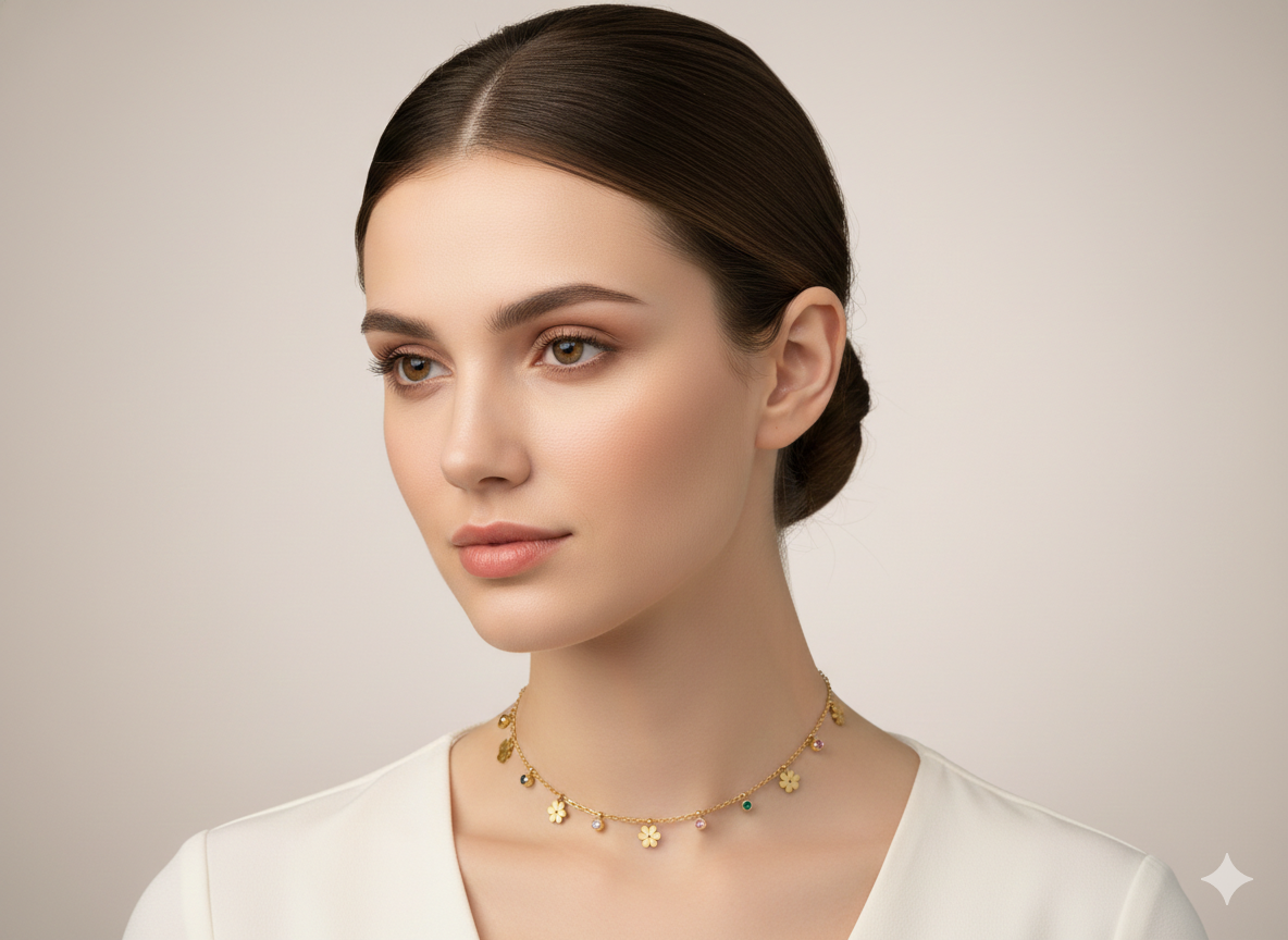 Be the first to review “Dainty 14K Gold Flower Choker Necklace – Multicolor Crystal Floral Charm Necklace – Adjustable Minimalist Garden Jewelry for Women”
