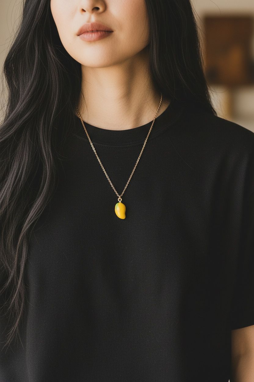 Brighten your day with this charming Yellow Mango Pendant Necklace. Featuring a glossy enamel fruit charm on a delicate gold chain, this tropical-inspired accessory is the perfect gift for those who love quirky and colorful jewelry.