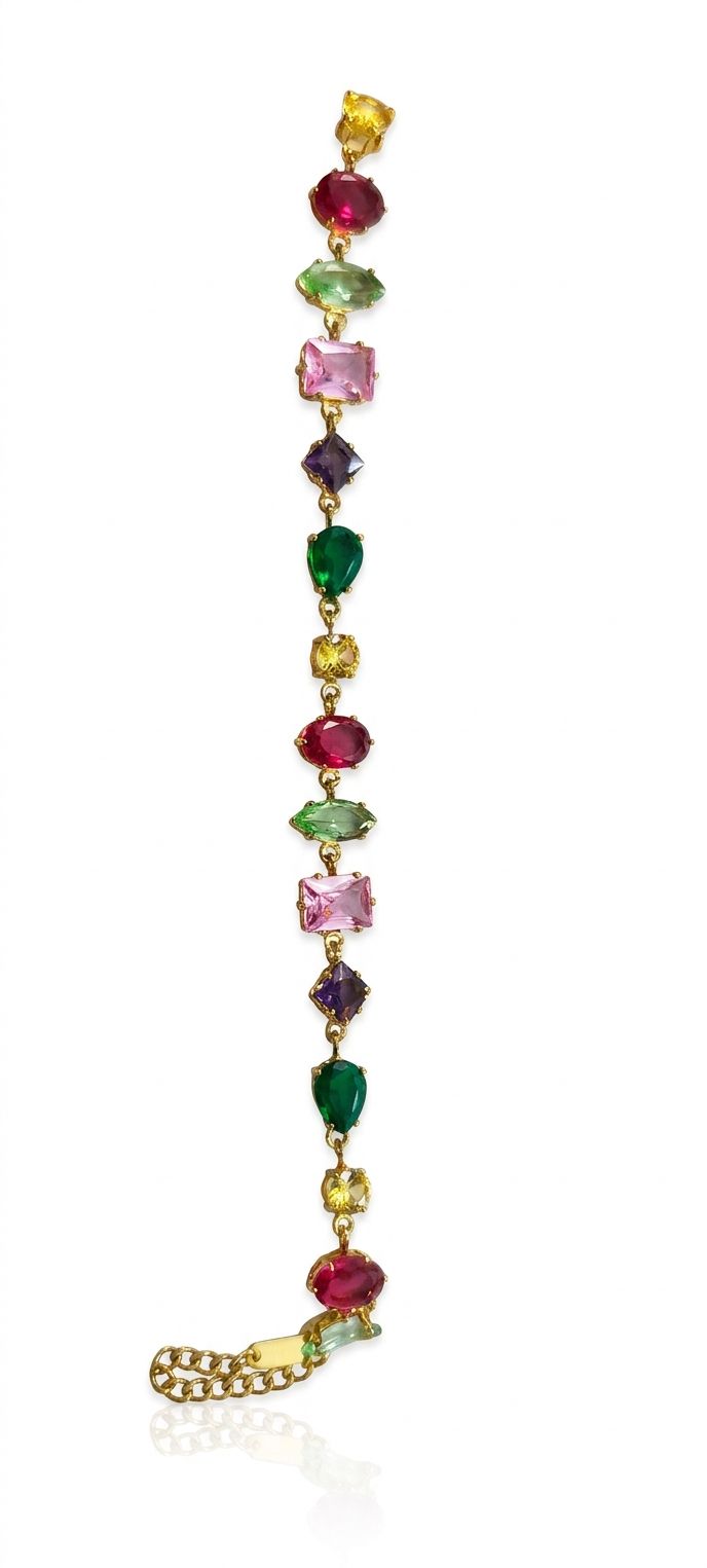 Be the first to review “Dazzling Multi-Color Crystal Stone Link Bracelet | Gold-Plated Adjustable Bracelet with Vibrant Gemstones | Elegant Fashion Jewelry for Women & Special Occasions”