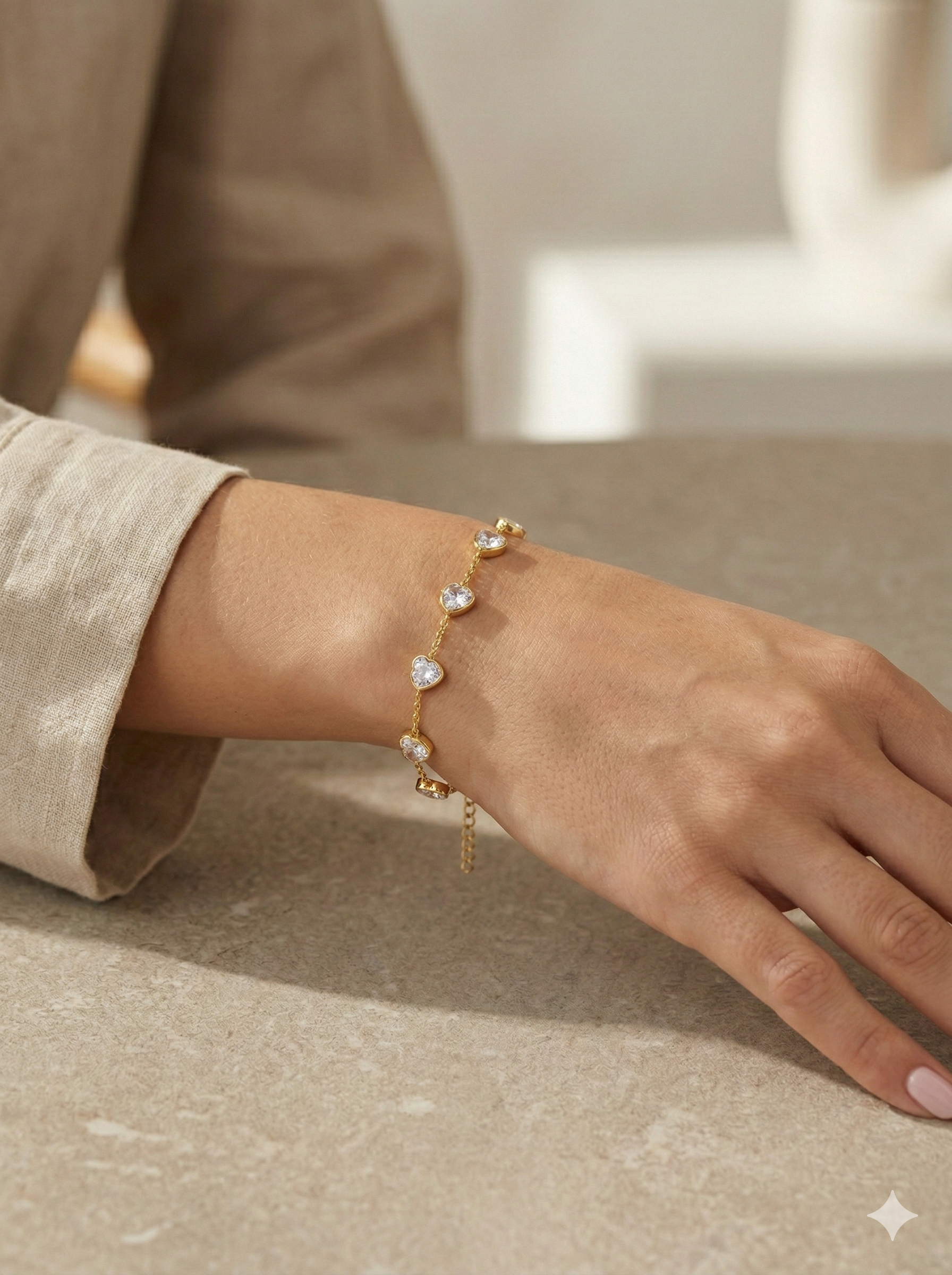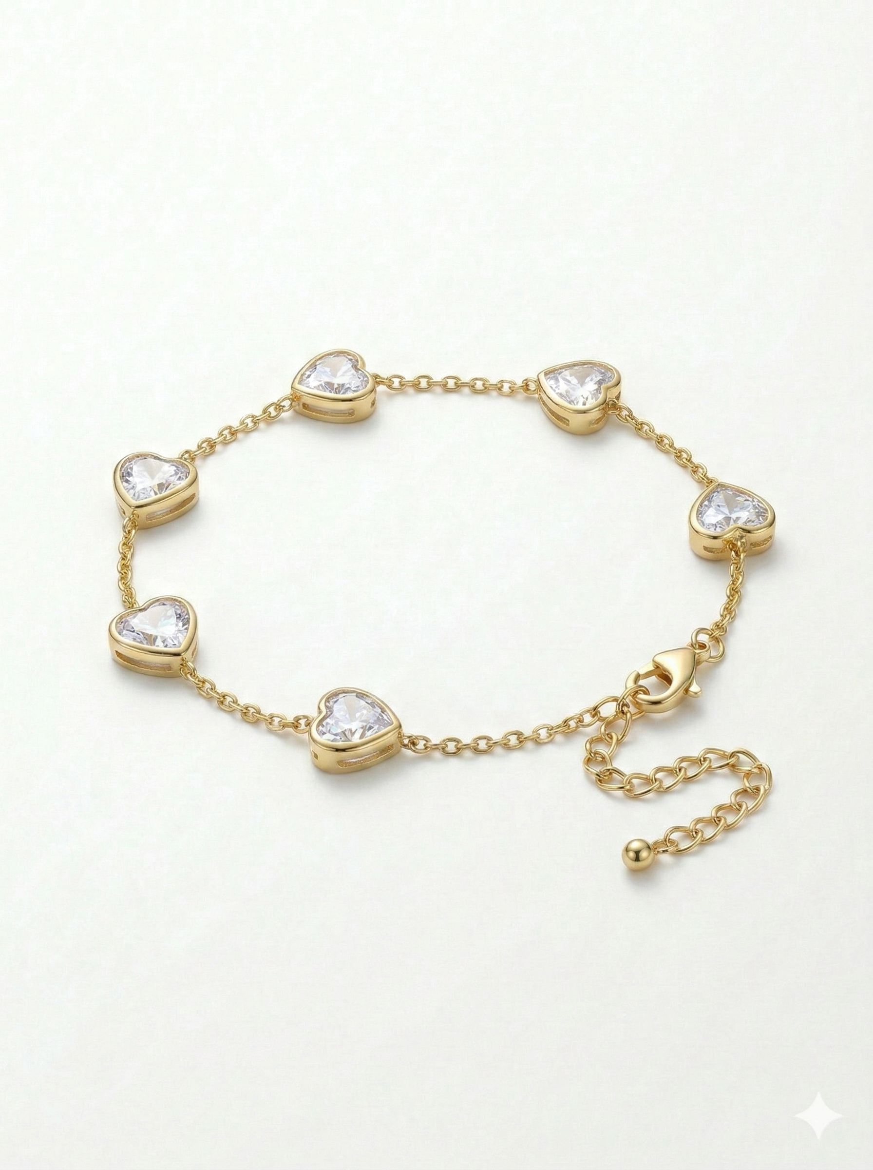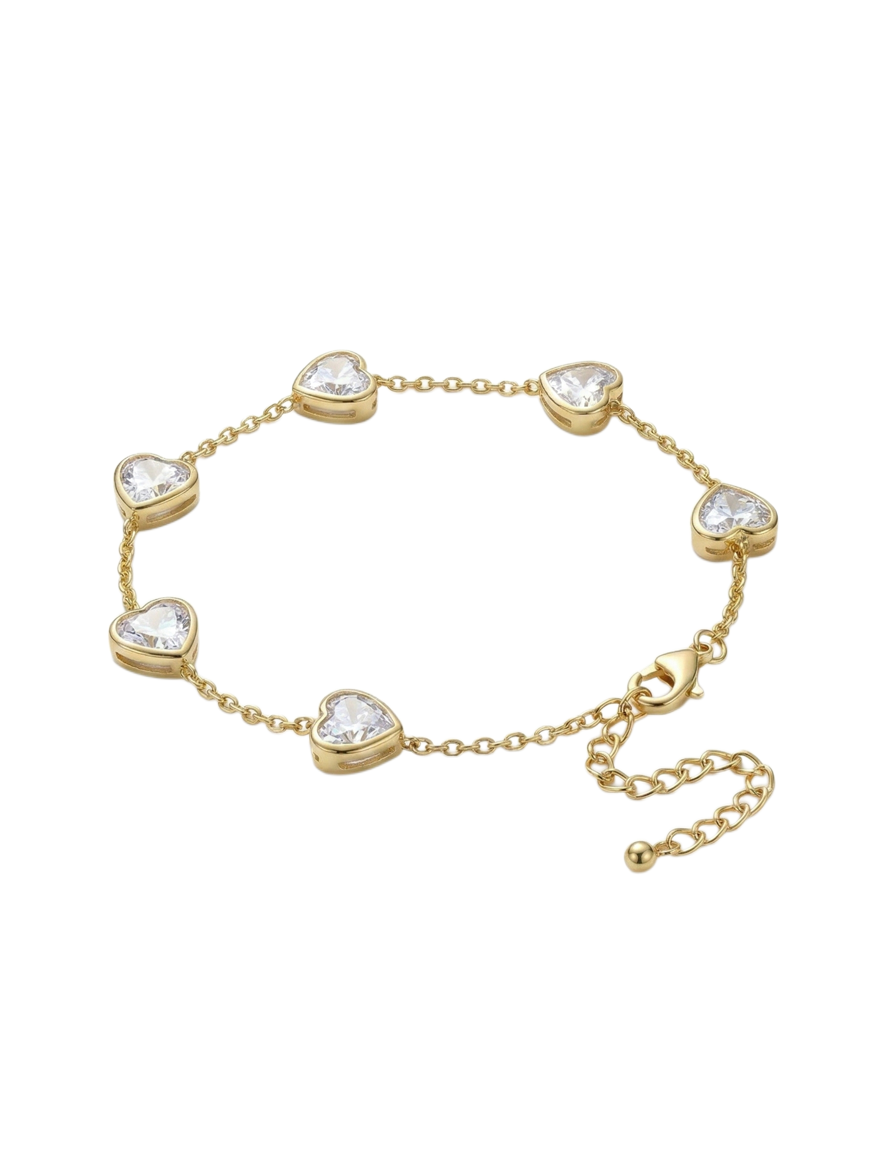 Elegant 18K Gold Plated Heart Bracelet with Clear Zirconia Stones – Dainty Jewelry for Women