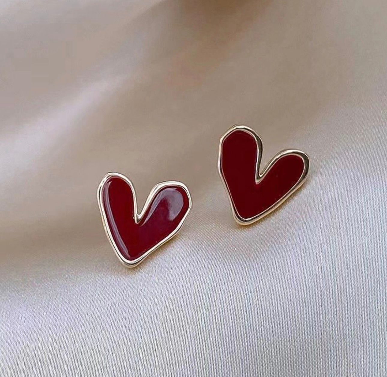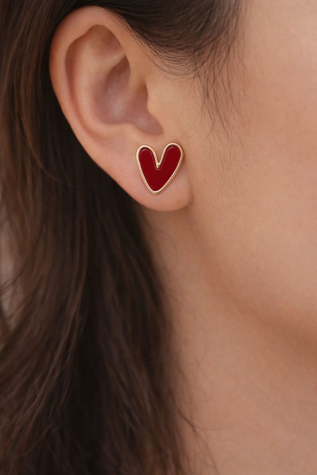 Add a touch of romantic sophistication to your daily look with these deep red enamel heart studs. Featuring a sleek gold-tone border and a modern asymmetric heart design, these lightweight earrings are the perfect gift for Valentine’s Day, anniversaries, or self-care treats