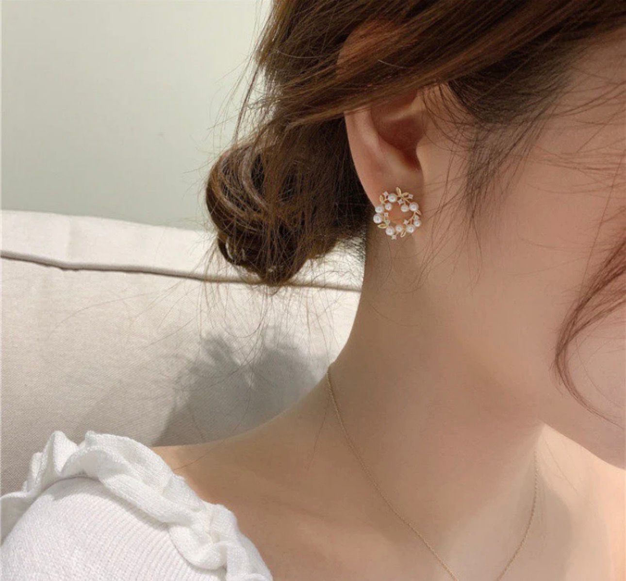 Add a touch of timeless grace with these Pearl Wreath Stud Earrings. Featuring a delicate circular wreath design accented with lustrous pearls and sparkling zircons, these S925 sterling silver base earrings are the perfect blend of vintage charm and modern elegance.