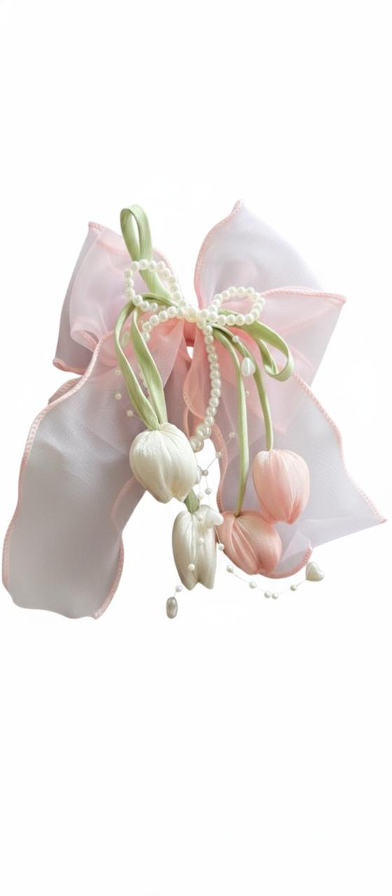 Transform your hairstyle with the breathtaking Pink Organza Tulip Hair Bow. Crafted from premium, sheer shimmering organza, this statement clip features a cascade of 3D silk tulips and delicate pearl tassels. Perfect for brides, bridesmaids, or anyone embracing a romantic, ethereal aesthetic, it’s the ultimate accessory for a polished, feminine look.