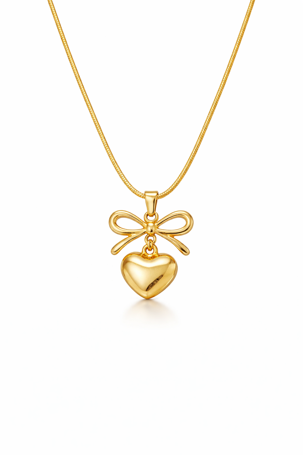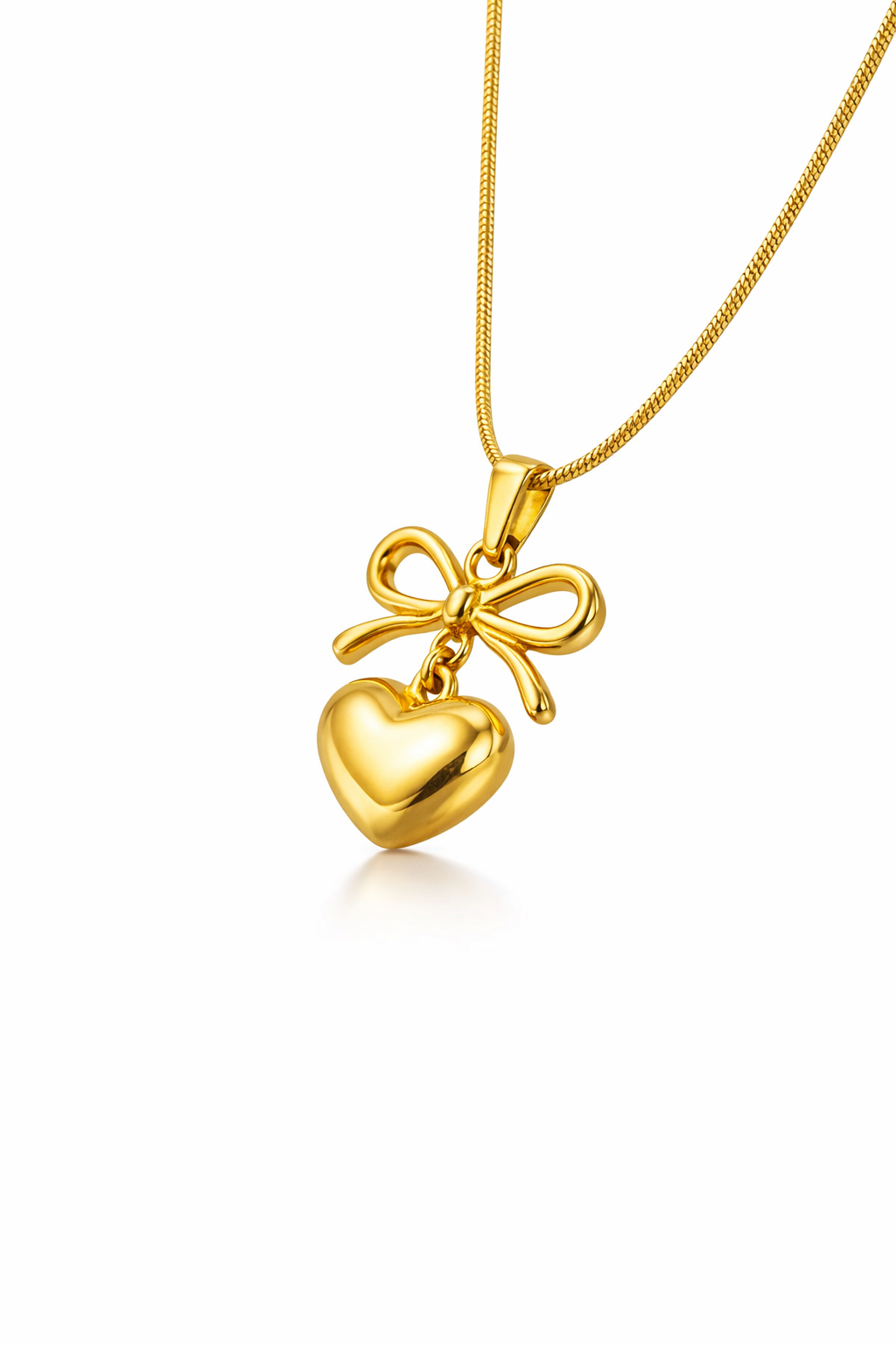 Whimsical Design: A beautifully detailed bow paired with a polished heart pendant for a look that is both sweet and sophisticated.