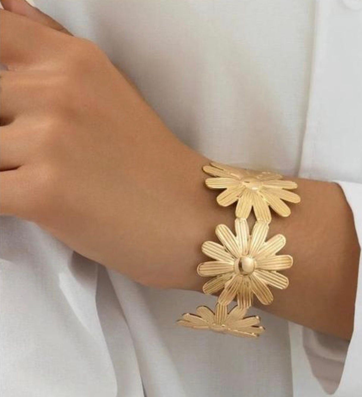 Bloom with Radiant Style in Every Petal Add a touch of eternal spring to your jewelry collection with this exquisite Daisy Floral Cuff Bangle. Designed for those who love bold yet feminine accessories, this bracelet features a series of beautifully rendered daisy charms that wrap elegantly around the wrist.