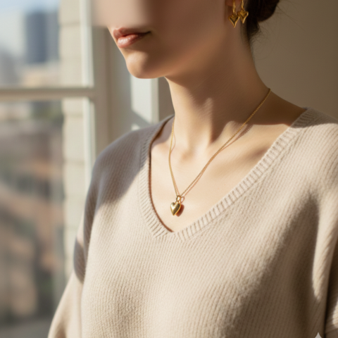 This lariat is a “style multitasker.” Wear it over a simple turtleneck for an elegant daytime look, or let it rest against your skin with a deep neckline for a high-fashion evening aesthetic. It also pairs beautifully with simple gold heart studs.