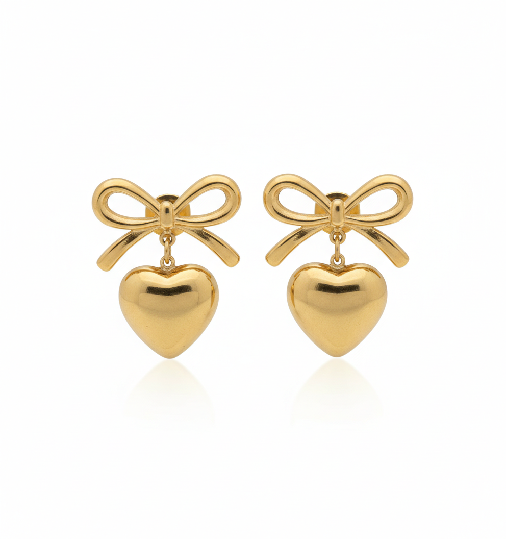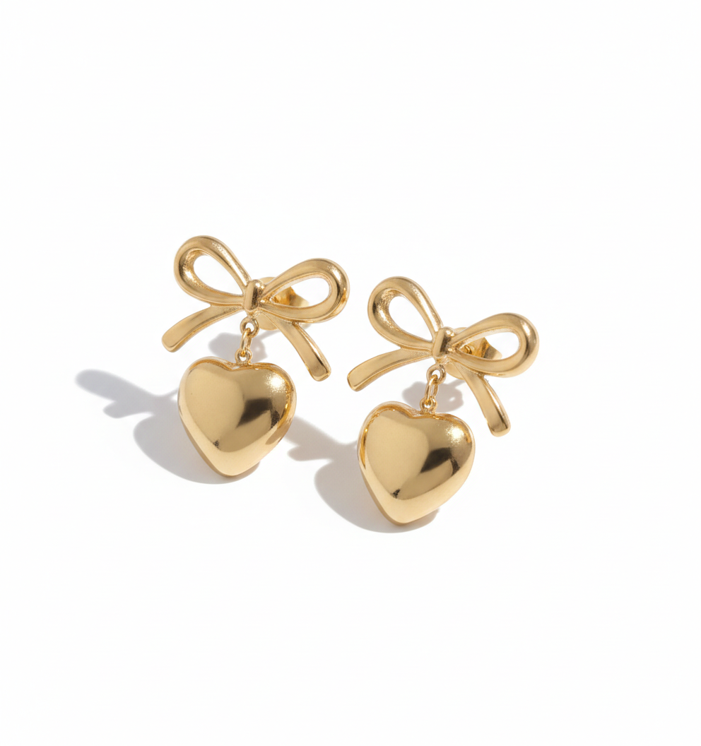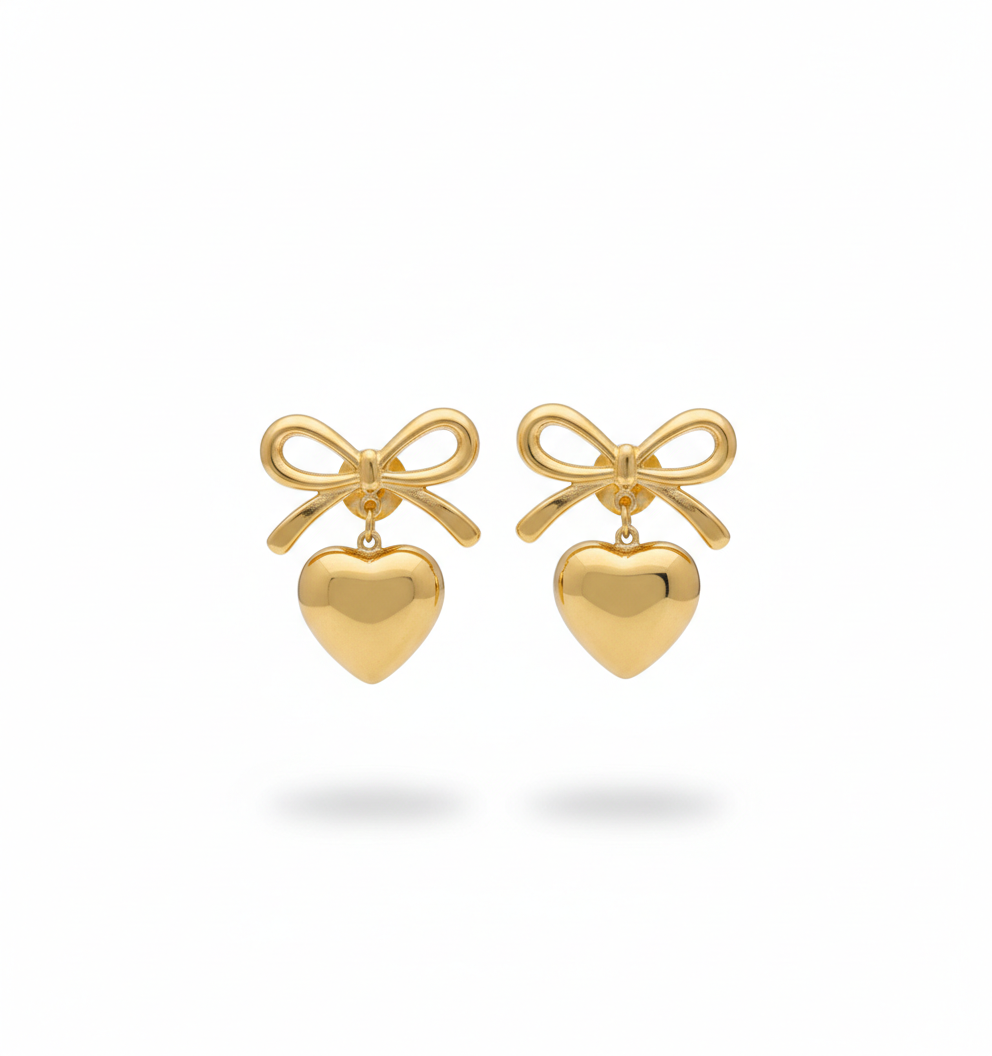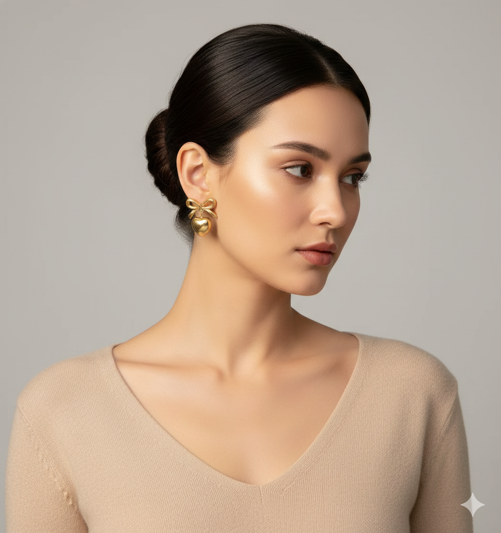 The Nayraah Ribbon Bow & Puffy Heart Earrings are a masterclass in playful elegance. Designed for those who love romantic, vintage-inspired aesthetics, these earrings combine two iconic symbols—the bow and the heart—into one seamless, high-fashion accessory. The 3D “puffy” heart catches the light beautifully, providing a rich, mirror-like glow that elevates any outfit.